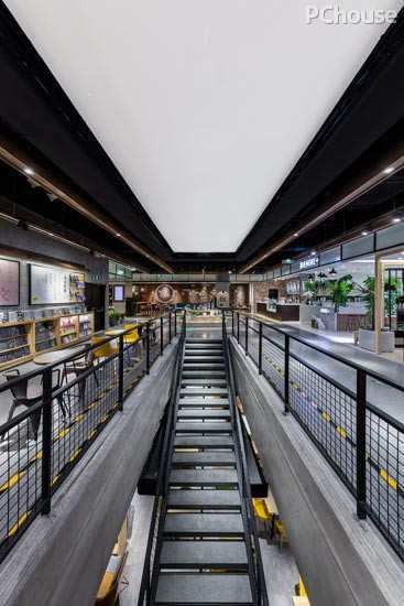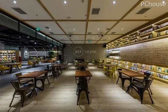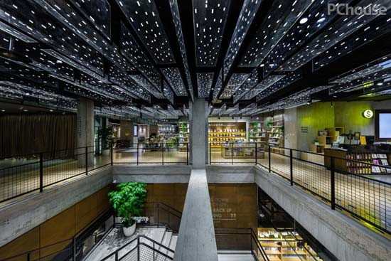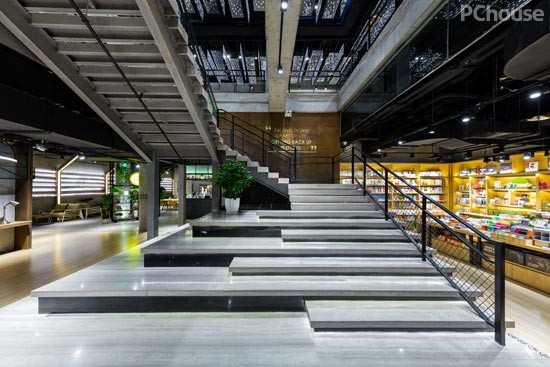 编辑点评:在具体的空间分区上,设计师以“文化工厂”的创意概念为出发点,对书区、咖啡区、创意市集等做了主体化的风格设计。