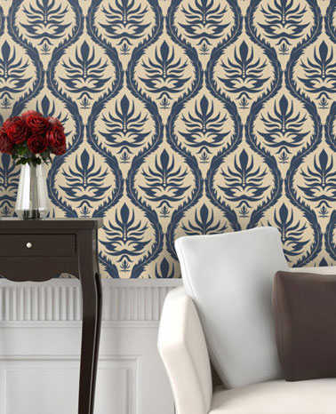 具有异域风格的平铺背景墙,独特的花纹神秘性感,深蓝色搭配米色也很低调。配上同色系的家居,十分和谐。一簇艳丽的玫瑰使房间更加妖娆。