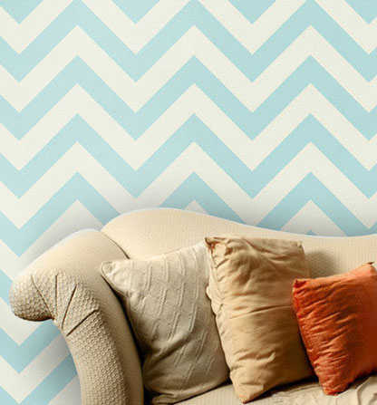 蓝白相间的几何波浪条纹,是房间空间灵动与生机。蓝白色也能使人想到湛蓝的大海,以及扑面而来的舒爽海风。这样的背景墙能很好的缓解人的压抑与痛苦。