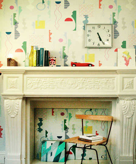 可爱多色的背景墙,一定会出现在女生公寓中吧。若是觉得太过于凌乱,那就摆放一个稍大件的家具,分散注意力吧。本案中复古的欧式白色假壁炉,效果就很好。