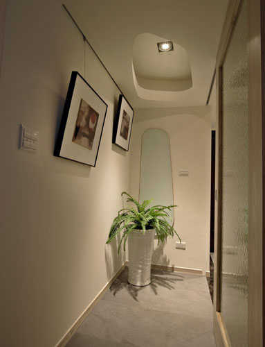 编辑点评:生活上必备的收纳空间采取隐藏式的平整设计,位在玄关到客厅的主动线上,也丝毫不见压迫感。