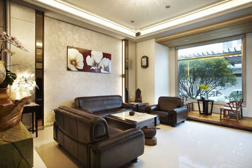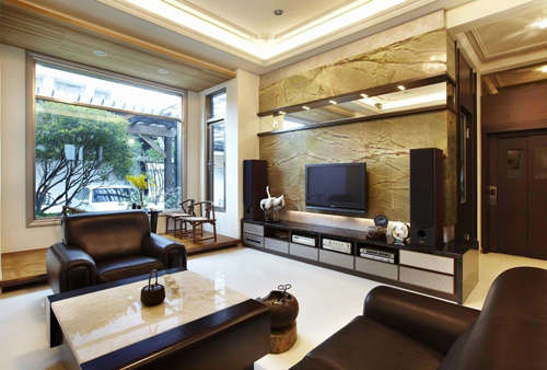 编辑推荐:原本就显得挑高的客厅,沙发背墙使用垂直造型的茶镜,加大屋高条件的优势。