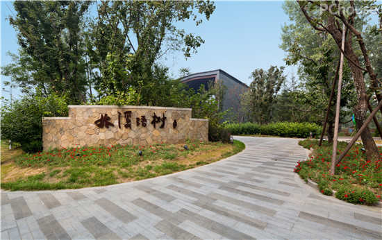 设计说明:入口前“林溪语树”四个大字的原石LOGO墙,是设计主题展开的自然引线,全木质用材与木色屋顶的外建筑为室内设计带去灵感。