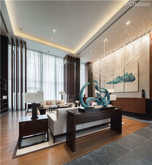 【太平洋家居网 设计频道】项目位于百年滹沱河畔,建筑有3000㎡的酒店度假式体验空间,450㎡独栋别墅,120-190㎡小院别墅,90-96㎡风情叠墅和48-90㎡景观洋房。RWD空间设计团队一同打造一个“近享城市繁华,远瞰世外桃源,可以每天度假的居所”。