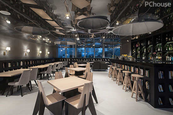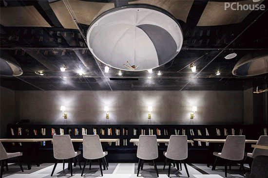 编辑点评:深色的空间,零零星星的灯光,于酒杯的摇晃间和书籍的翻页间,传达着一种朦胧而优雅的唯美感。墙壁上,依然是亲切而幽默的问候语汇,设计师把各种视线可落脚的地方用拟人化的文字传达来跟客人互动,让旅客随处都感受到关怀,随处都可以产生交流。