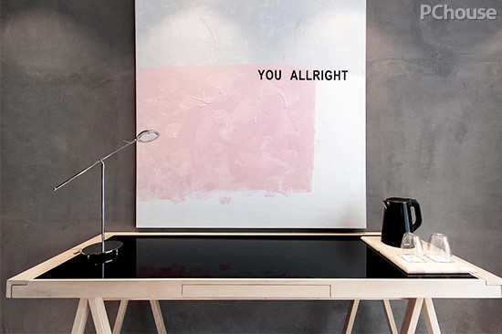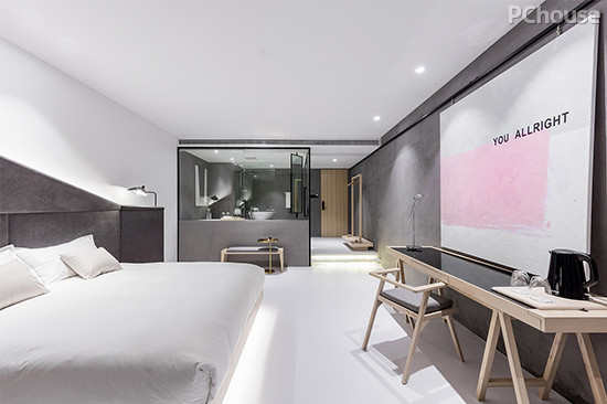 编辑点评:酒店的设计注重细节,还体现在艺术符号的沿用与延伸。正如这种带有问候语汇的巨型挂画,是酒店中出现频率很高的一种设计语汇,及时一种文化的魅力,也传达出酒店的待客理念。除此之外,客房的主题色调虽然都是以黑、白、灰三色为主,但不全是僵硬的运用,设计师会根据每个房间的特点,选择合适的颜色搭配,将颜色的深度进行变化,以达到成最舒服的搭配效果。
