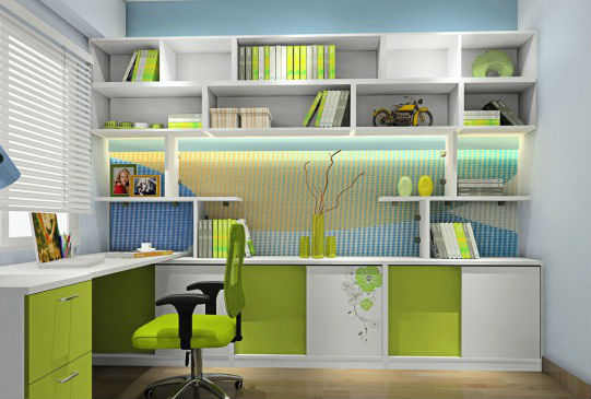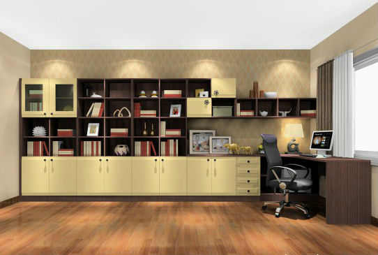 书房的墙面、窗帘等大面积的区域适宜选用米色、淡蓝色等清浅淡雅的颜色,避免使用强烈刺激的颜色。更重要的就是的靠装饰品来体现了。把自己的情趣充分融入书房的装饰中,一件艺术收藏品,几幅钟爱的绘画或照片,几幅亲手写就的墨宝,哪怕是几个古朴简单的工艺品,都可以为书房增添几分淡雅、几分清新。
