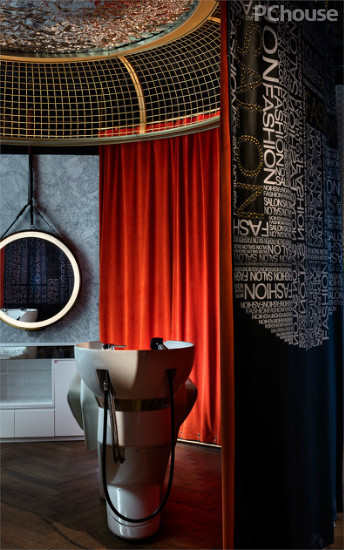 专业定制的梳妆镜,运用金属,皮革及LED照明等具有工艺感的吸睛要素,通过镜面反射使空间更加梦幻迷离,光影魔幻;精选的朋克文化大幅海报,辅以透光装饰艺术墙面通过影像处理更加烘托空间氛围。