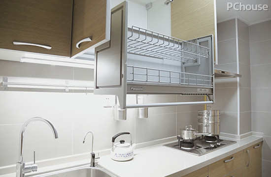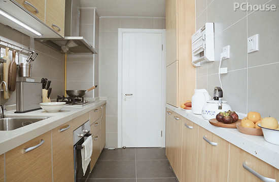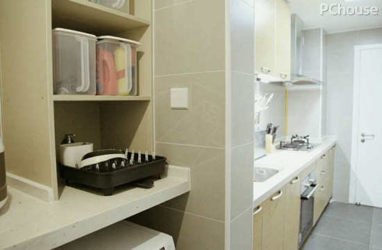 一字型的橱柜布局简洁、小巧,是空间狭窄厨房小户型的不二之选。但是一字型橱柜要注意功能完备,更要注意最大限度地提高利用率。memedoo自有妙招,将诸多电器和厨具们尽量收纳好了,让台面显得清爽、整洁。