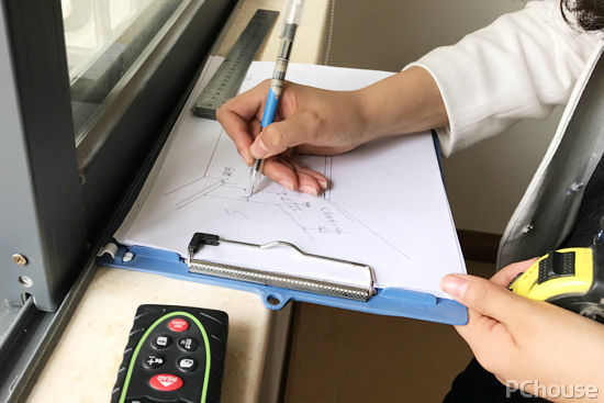 知道了何先生和何太太对书房的诉求,索菲亚设计师上门到他们的家实地勘察,采用专业的仪器测量空间的大小,并详细记录每一个墙面、转角位置的尺寸。相对于传统的尺子测量,使用专业测量工具能保证测量数值的精确度,以免后期定制家具出现尺寸偏差。