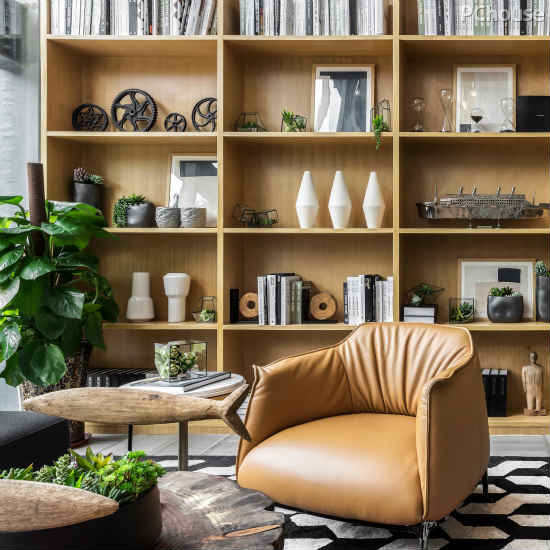 编辑点评:进入走廊区域,空间愈发静美。浅浅的色调,极简的线条,艺术的挂画...在灯光下尽显质感,让人在不经意间轻松卸下重负、浮躁,变得宁和、平静。