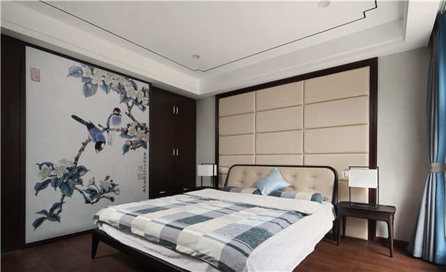 卧室用了大量的木质家具,尽显档次,而诗意的花鸟图又将大自然的感觉引入到了室内,现代的中式风格非常令人向往。