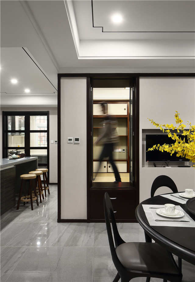 房主对于设计并没有过多的指向性,希望设计师能够自由的挥洒,这样使得设计本身有了更大的空间。设计师对建筑内部做了有序的调整,将原始厨房的位置做了外扩,设计为开放式,为和室的入口提供更多的便利,餐厅背景玻璃隐形窗的巧妙设计给和室中带去了采光,这种借光的手法与苏州园林有异曲同工之妙。