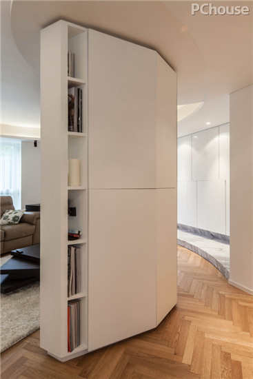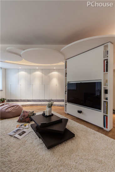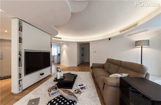 客厅作为居家空间的核心部分,以椭圆的形式进行半虚拟勾勒,使新空间“无限”扩张。