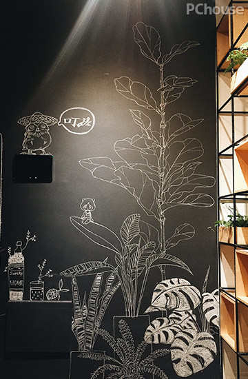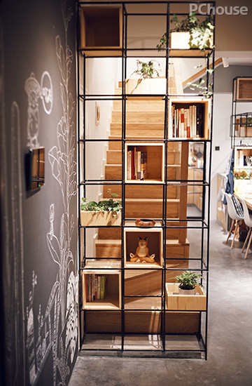 一进门左侧是整面的黑板墙,钢筋柜子自成的隔断不会遮挡太多视线。