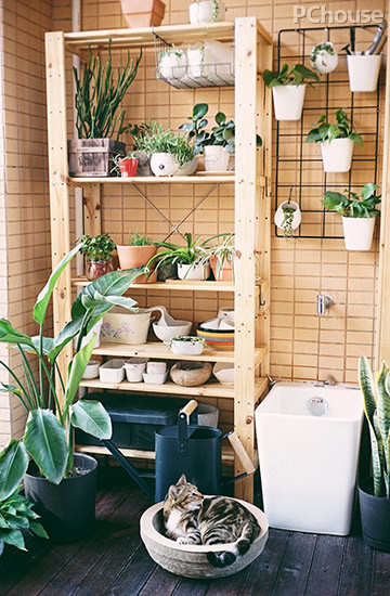 钢筋柜有些格子也种上了植物,我们特别设计了自动灌溉系统,丝毫不用爬上爬下浇植物,出远门也可以安心!