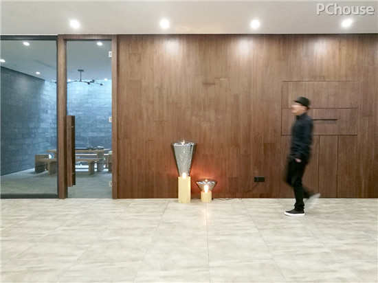 11扇整幅玻璃门,既划分了庭院与建筑内部空间,又使得内外空间得以交融。同样,建筑内部空间也“溢出”到庭院中,占据了室外的部分空间,使人与自然得以更近距离地交流。