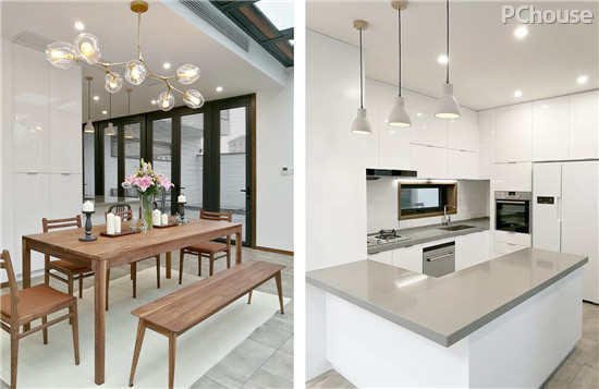 【太平洋家居网 设计频道】设计师根据宅地所在位置和面积情况,从建筑体量、空间、色彩、光线等方面结合现代简约的设计语言,汲取东方元素,将建筑主体与两处庭院相互交融,实现公共空间单元与私密空间单元合理有效分离。