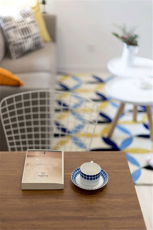 两个圆形的茶几放在不是特别宽敞的客厅,灵活又随性,灰色的沙发,增添质感。