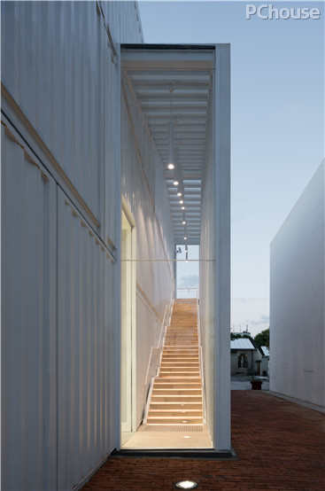 交通流线的直接高效使得独立空间既获得了独特的天光,又不会影响艺术品应有的光线控制,而原有室外楼梯也通过非常简洁自然的手段加以室内化改造,精致的龙骨细节处理和纯净的界面使得由一楼到二楼的空间体验更加多样而丰富。