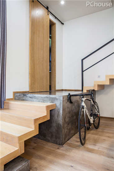 设计师黄文彬对空间结构进行了生活功能上的调整,三口之家为背景的生活环境里,完美展现了一个全功能的生活解决方案。除常规的书房卧室功能外特别安排了入户门厅、设备及储物间、食品储存、洗衣房等舒适化的细节功能。在设计中运用到木地板,素水泥、不锈钢及玻璃等材料。着重刻画材质的交替,以体现空间细节,即显干练也显温馨,同时还能营造出一股现代的工业气质。