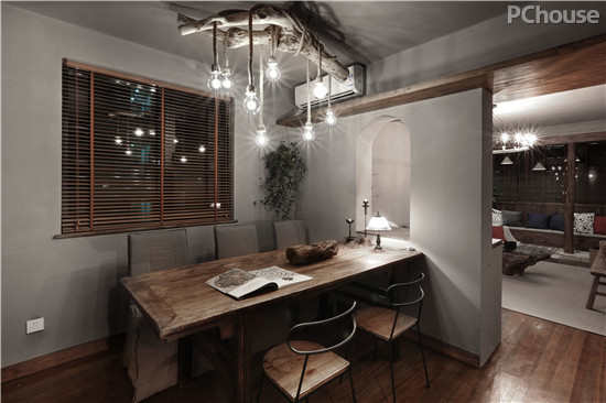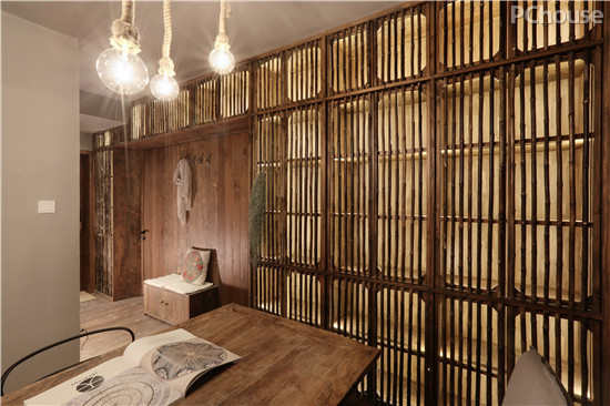 编辑点评:走廊的尽头,又重新回归到了‘古朴’与‘深沉’的主题。倦了的时候,就拿起眼前原木切片上那古陶的茶杯,啄一口清冽的香茶,继而反复触摸面目斑驳的枯木老桌,从老物中感受岁月的静美与力量。