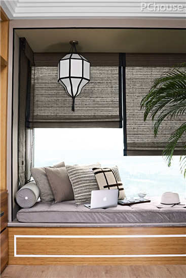 最后来到书房,这个房间则更多呈现了亚洲的风格,通过飘窗处的竹帘来表达东方的禅意。