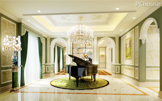 设计师运用弹奏美妙音乐黑白交错的钢琴键,演绎时尚、文化、艺术。主人的气质所在显然胜过奢华,所以设计师十分推崇优雅、高贵和浪漫。