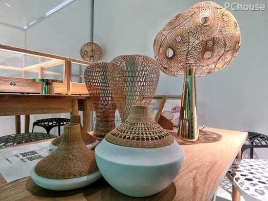 藤质灯具:自然藤编辅以陶瓷或者金属作为灯具基底,手工艺与现代工艺交相辉映,把原生态回归到新日常。