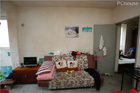 这间“塞”了8口人的房子位于浙江嘉兴,50平的建筑面积包括一室一厅一厨一卫,厨卫还是用木板简单隔开的。向《生活改造家》发起求助的是女主人茹茹,她来自吉林,和丈夫到上海打拼,有两个可爱的女儿,大女儿3岁,小女儿尚不能离开怀抱。目前,茹茹的父母、外婆,和姨妈与他们住在一起,四世同堂的二胎之家本该享尽天伦之乐,可50平米内8个人的生活却只感受到压抑。