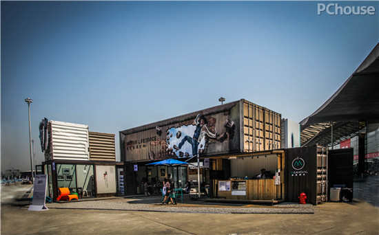 在本次新国际博览中心举行的展会上,一进入展馆就能在中央区域看到一个占地500平方米,色彩绚丽鲜艳,外观时尚的集装箱建筑。前来看展的人们纷纷在漫居生活空间前驻足拍照,进入一个个集装箱空间仔细参观。