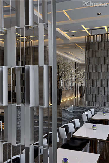 一楼大厅,利用界面,创造了过道空间,在旅人的行走间转化下一次启程的心境,也因在水平中改变空间的应对,使得视觉的驻留多了丰富的层次关系,亦或在水平的视线中创造垂直线性的屏风,重复的元素让数大表现了美的本质。