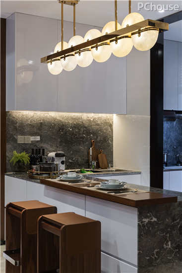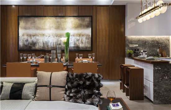 [【太平洋家居网 设计频道】本案坐落于苏州高新区,硬装几乎是在用大面积的石材与木饰面去描绘各个空间,通过空间的多变与交错,在灯光的流动中,仿佛让整个空间有了灵魂的气息。