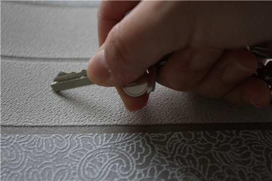 作为墙面装饰材料,壁纸具有一定的耐刮划性才能维持墙面的长久美观,但是由于这款壁纸的材质较厚,加上立体的表面纹理,注定使其耐刮性大打折扣。编辑用钥匙轻轻在壁纸表面快速划过,就留下了比较深的印记,所以这款壁纸可能不太适合有熊孩子的家庭使用。