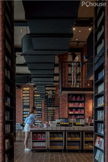 “竹林”左侧,隐约可见的红色砖墙,便是此间钟书阁最具特色的地方。
