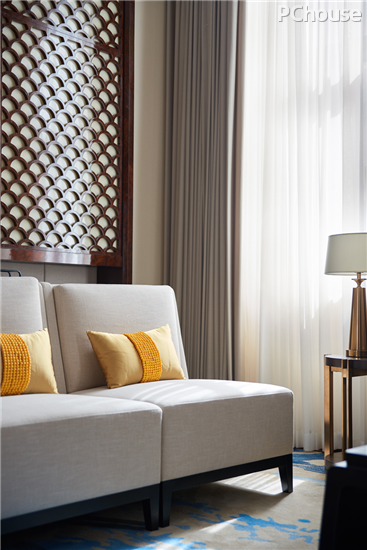 VIP区域以雅致的米白色和简化的线条打底,奠定空间的基调,为提升舒适度,沙发椅选择造型简约的现代款型,通过线条的弧度拿捏出中式的味道。