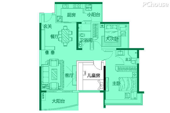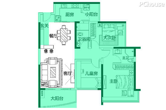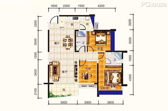 1.原户型的结构方正合理,无需做太大的动线变化,且阳台和主卧的采光较好;