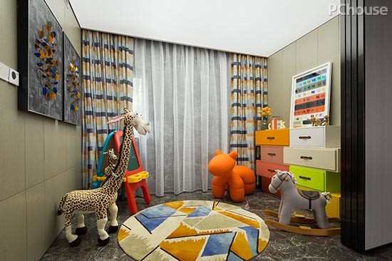 多功能房间设计为儿童玩乐区,色调温馨。鲜艳的色彩,各种小动物,软软的地毯。让小主人无忧无虑的享受玩耍时光。