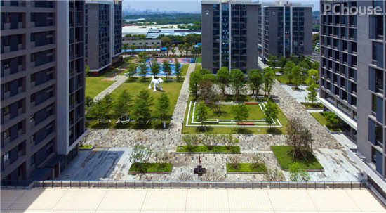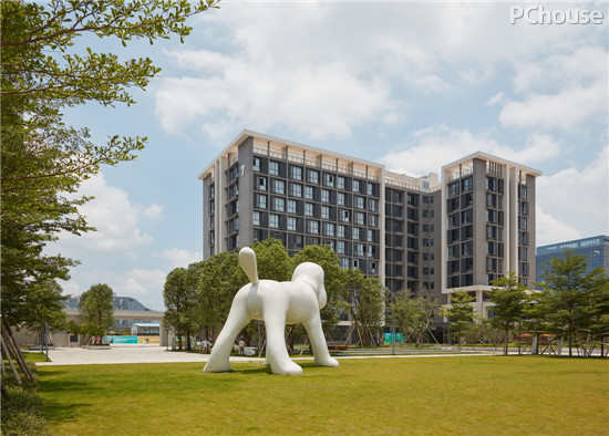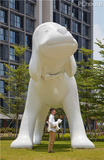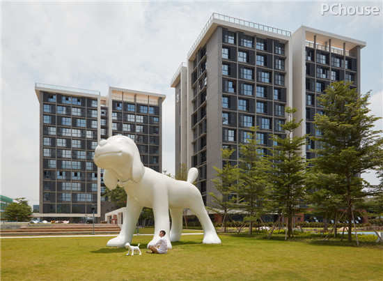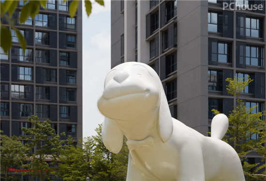 设计说明:从高处俯瞰地面,项目的绿化做得十分充足,楼与楼之间保持一定的距离,园区草地中伫立的小狗是设计师的得意之作。