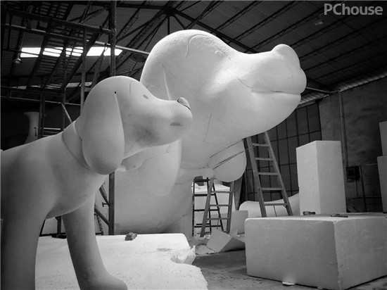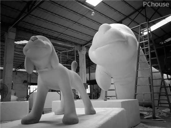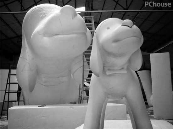 设计说明:园区草地中伫立的小狗设计师取名小E,他身高6米,憨厚可掬,由设计师彭征与雕塑家陈经毅联手创作。狗是人类最好的伙伴之一,设计师喜爱它可爱的情态和憨厚的秉性、单纯而且忠诚。设计师说有时候甚至羡慕这种秉性,并乐意以此自嘲。