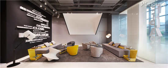 设计说明:这个独立的休息区设计简洁明快,地毯上的陀螺椅嵌入盗梦空间的元素,没有冗余的设计让人仿佛走进另一个空间。
