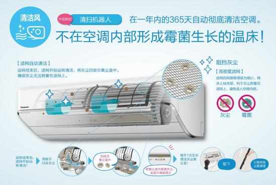而它的内部自清洁功能,更是使得该系列空调在展现高端科技时展现出人性的关怀。如松下XE怡臻系列空调,在空调运转结束之后,滤网就会开始运转清洁,将灰尘回收到集尘盒之中,确保空调内部的灰尘无法存在滤网上,实现滤网的自动清洁,抑制空调内部霉菌的生长。