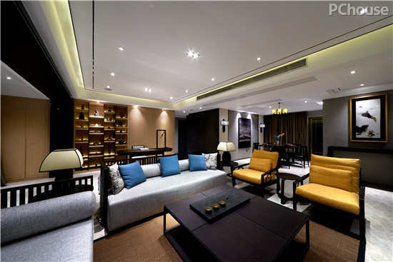 设计说明:遵循新式东方风格的中西元素混搭,这里更多的是硬朗的黑色线条,勾勒出东方风格的主调,配以鲜明色彩的坐垫,使现代元素更加活泼地展现。