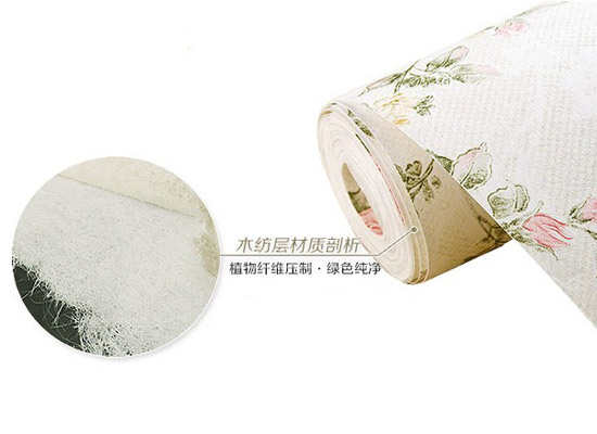 一卷壁纸以长宽计算,可铺贴约5.3㎡的墙面,以其质地可分两层,底层为纯木浆纸为原料打造,表层为一层以PVC打造的防水层。