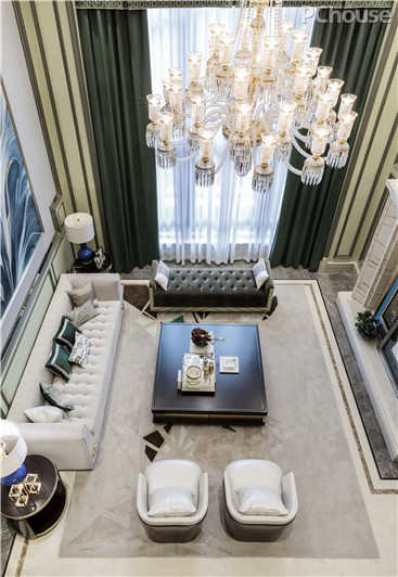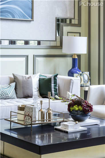 精心挑选了PANTONE5807国际时尚色系作为贯通主色,结合古典简化的线条,再配以范思哲款家具营造出了一个时尚、清新版的法式混搭风格