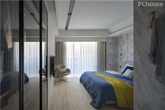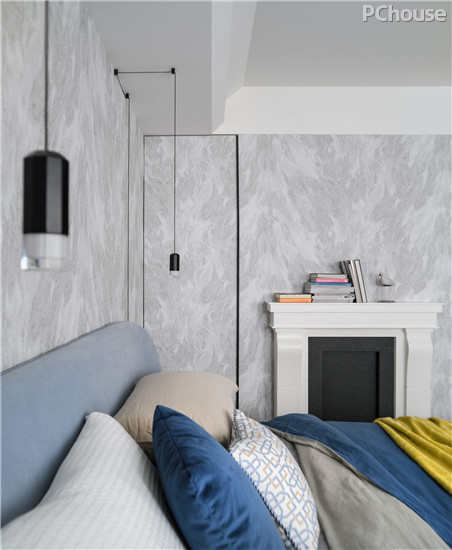 设计说明:相对于公共领域明亮舒适的清新风格,主卧房则因女主人对于壁炉深切的期望,转为中性而优雅的美式风格。