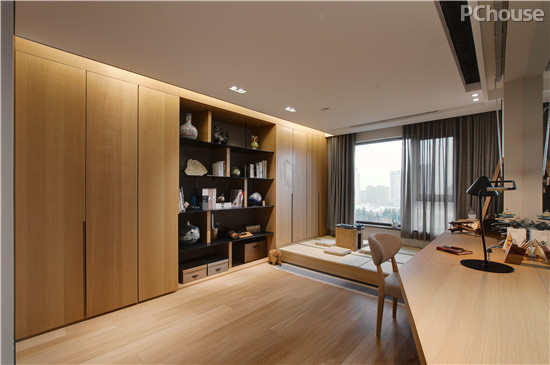 设计说明:主人房及主要书房同样延续了客厅的舒适温度,暖温而内敛。