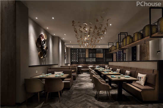 【太平洋家居网 设计频道】炭舍,是一家坚持传统风味与现代工艺相结合、深入汲取“食之本味”与“回到本源”饮食精髓的炭火干锅餐厅。本案是炭舍全国第19家门店,与炭舍此前的轻工业风大有不同,亦有相通之处。在空间设计上,本案既延续及强调了炭舍的“舍”之结构,设计师从传统建筑与艺术中寻找灵感,以“舍”为主题,将房舍构件中的梁、柱、窗、门提炼出来为空间立型,以简化的手笔搭建出一个屋舍俨然、其乐融融的用餐场景,同时融入炭舍最新的品牌定位,打造出一个简洁温馨、质朴自然的用餐空间。(资料来源于:艺鼎装饰设计)
