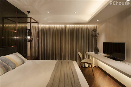 舍弃使用木色为主色,以白及淡灰与木色搭配的房间,别有一番恬静。