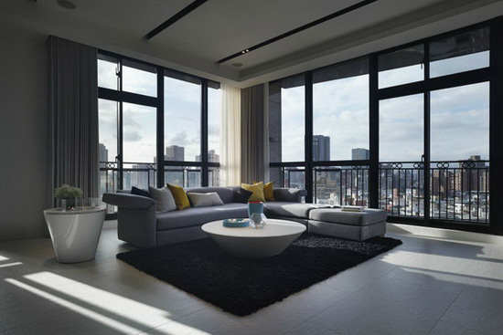 编辑点评:居高临下一览城市风景的客厅空间,俞佳宏设计师藉由现代美学风格的家具陈设,和谐里外调性,互为里外调性。
